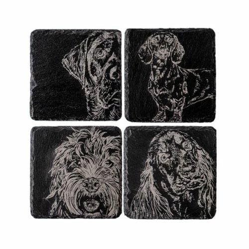 Beautifully handcrafted in Scotland, the Just Slate Company Set of 4 Mixed Dog Slate Coasters make a lovely table piece for your guests to set their drinks on. Each square slate coaster has been engraved with a stunning hand-illustrated engraving of a dachshund, a cockapoo, a cocker spaniel and a labrador.