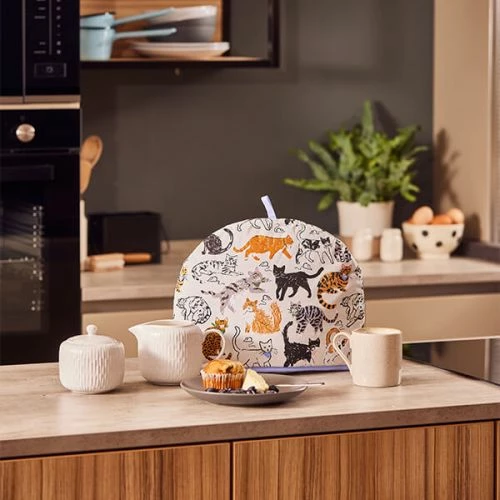 Watercolour and ink cats mingle with expressive oil pastel kitties for a purr-fect graphic aesthetic on this Ulster Weavers Feline Friends Tea Cosy. This collage of cats adorned tea cosy from Ulster Weavers is the perfect companion to your teapot, helping to insulate your brew and keeping your tea warmer for longer.