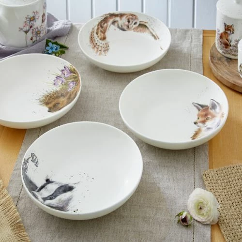 Wrendale Designs Set of 4 Pasta Bowls (Badger, Hedgehog, Fox & Owl)